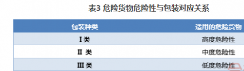 危險貨物在選擇包裝時,必須要根據其危險程度的高低,選擇不同安全等級的包裝,具體如表3所示。